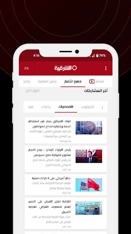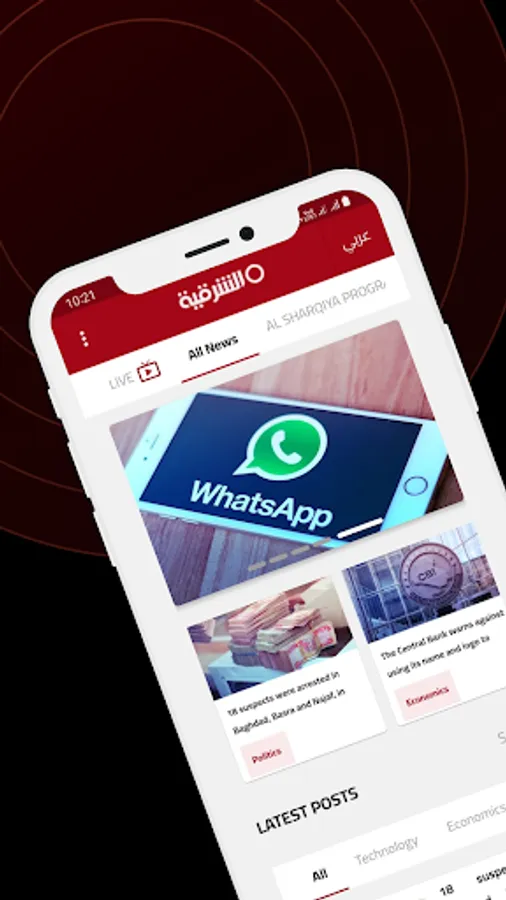 The application includes the live broadcast of AlSharqiya and AlSharqiya News channels, which is available on mobile and tablet devices.
