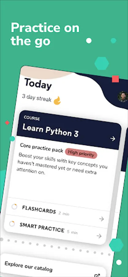 “Taking a few minutes a day to reinforce the underlying concepts has been an easy way to remember them, even on days when I’m not coding.” — Chance N., Codecademy Go Learner