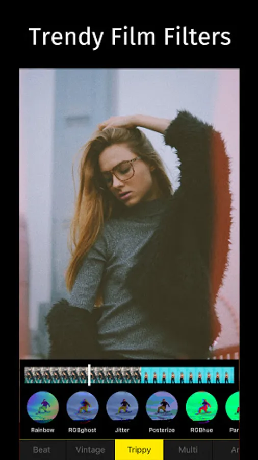 Record aesthetic and trippy videos with numerous powerful real-time video filters and animated text. Ranging from RGB glitches & VHS trippy sketch, also with pixelated filters to vaporwave effects.Let our power director 90s be your pocket video edit app now.
