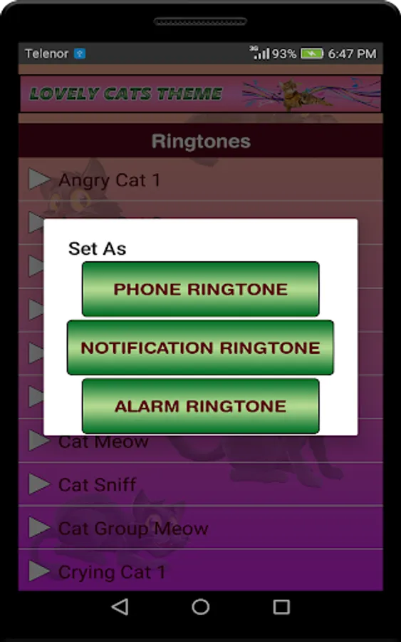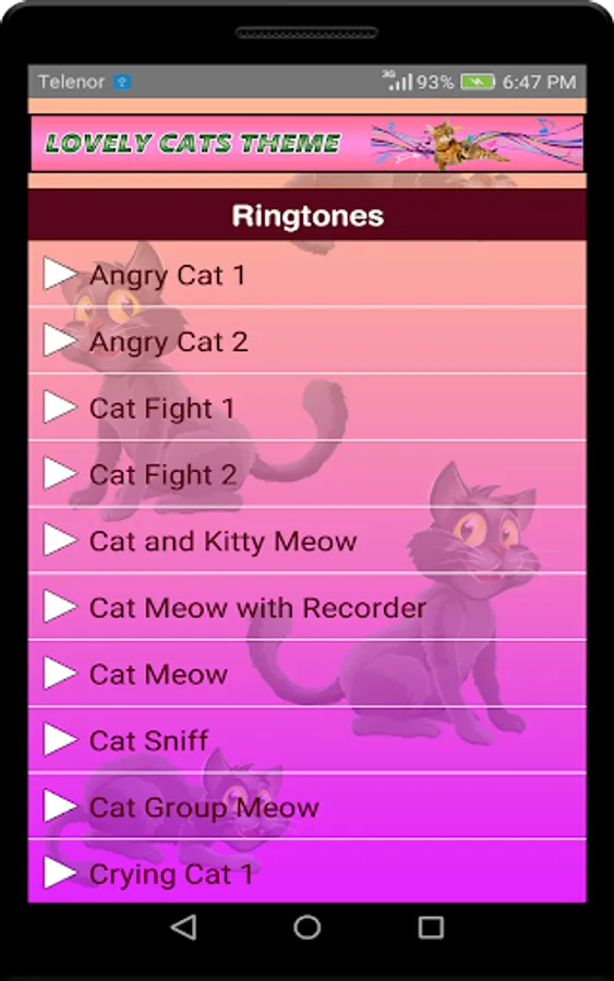 - Cat sounds and ringtones for your phone, accessible both in the app and your Phone Settings