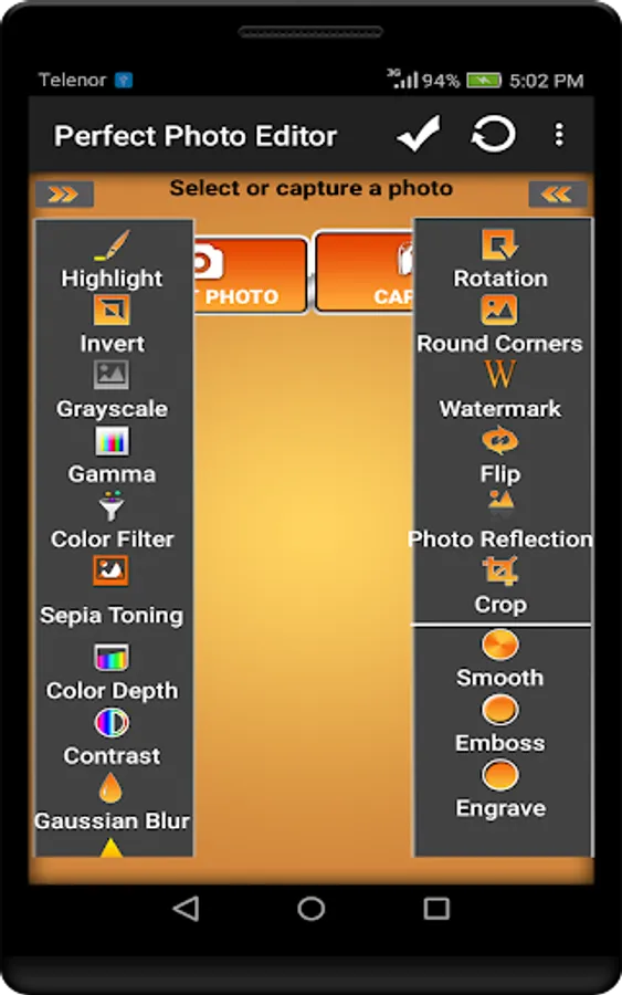 - Use the buttons on the top of the editing screen to capture or select a photo from gallery.