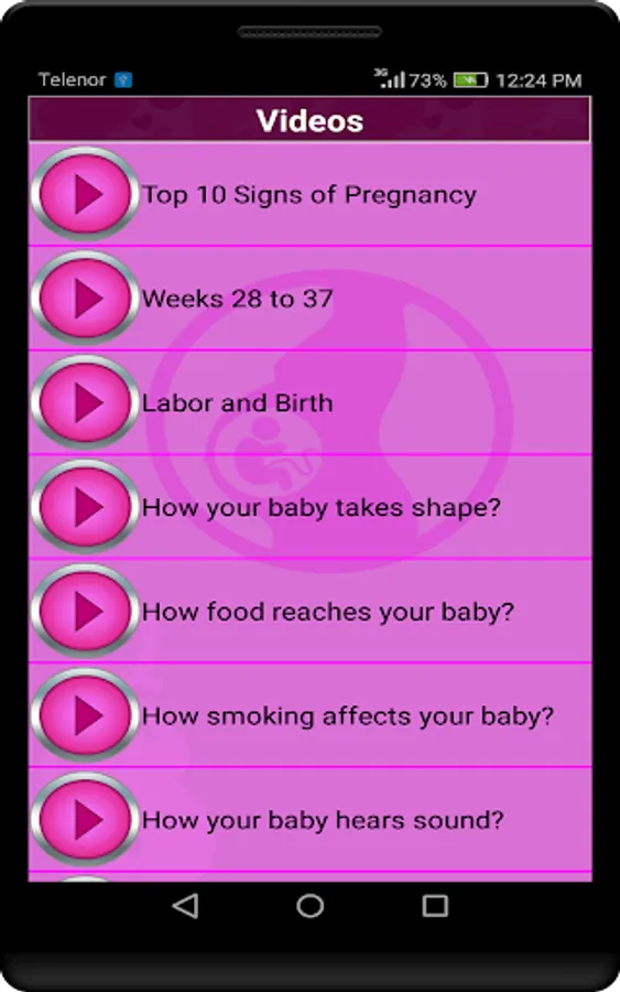Note: This Application is intended for informational and educational use only. Please consult your health care provider or doctor for any pregnancy or health concerns.
