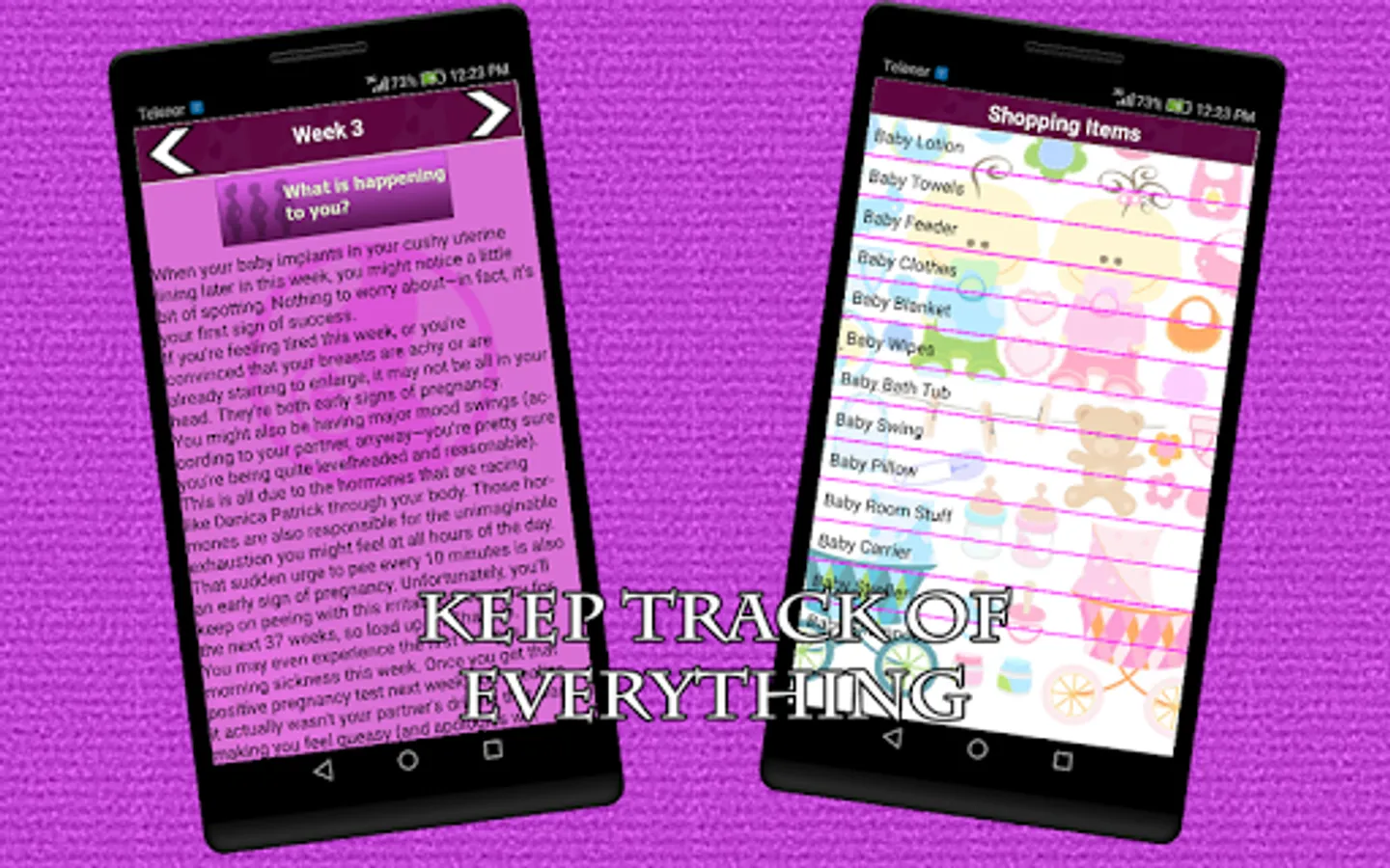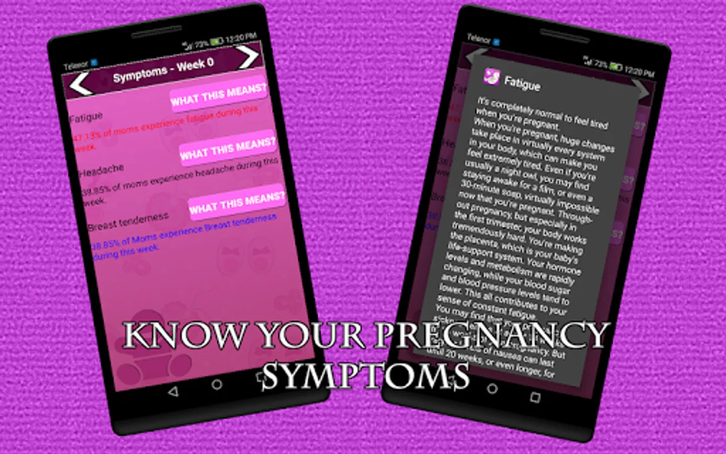 • Tracking of pregnancy symptoms, their causes and how their effects can be minimized to get the best pregnancy experience