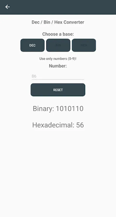★ Decimal - Binary - Octal - Hexadecimal converter
