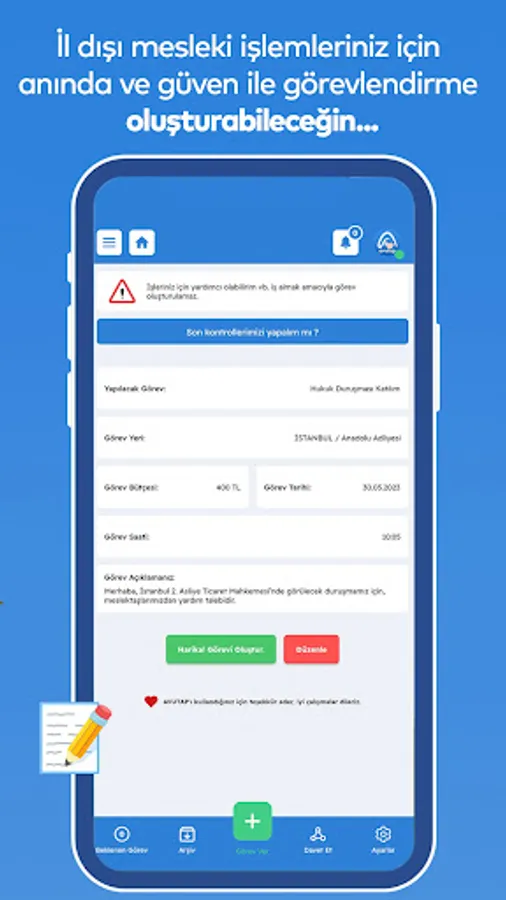 Turkey's most used leader, fairest and most transparent Lawyer Representation Network Project! The assignments you make for your extra-provincial transactions in 81 provinces and all courthouses are concluded in just "15 minutes". In our fully automatic referral system, which instantly notifies the Lawyers in the courthouses with Robot Search, SMS and E-mail; Reach your colleague instantly for your extra-provincial court works, whether by opening an assignment. Earn additional income by taking assignments from the courthouses of your choice.