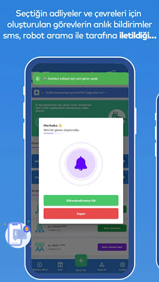 + Get instant news about the assignments to be created from the courthouses you will choose while registering, with Robot Call, SMS, E-Mail and Mobile Notification..