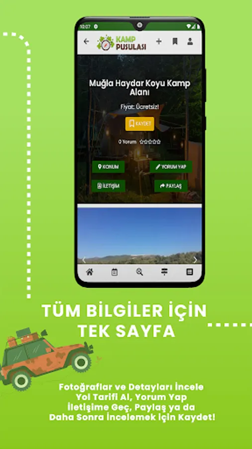 The Kamp Pusulasi application, which you should definitely check out before or while on the road, has a database that grows with user feedback and constantly updated content. So, what can you benefit from when making travel plans or as a travel companion? You can review the previously commented locations by travelers, access detailed information from the places on your route and save time. Our application is a guide where you can easily access up-to-date information on the place you want to go, manage your vacation time in a quality way and make your vacation more enjoyable.
