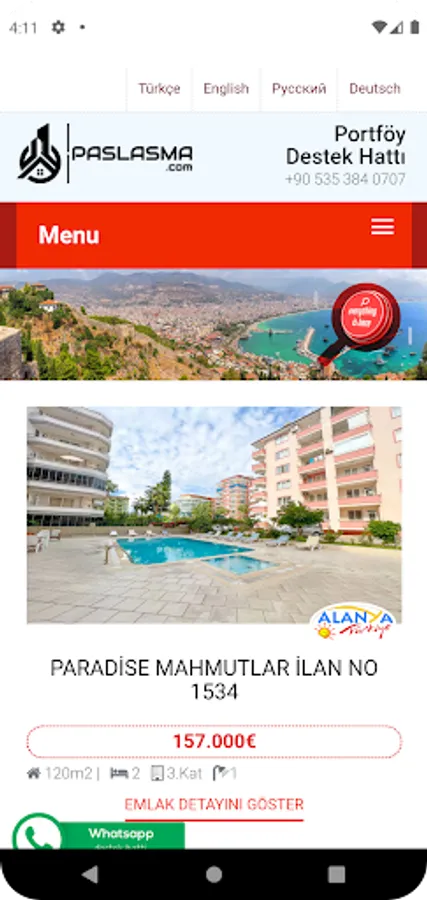 With Paslasma, it offers a portfolio to all real estate companies in the Alanya region. The residence you are looking for is in the large portfolio pool. Provides easy progression with passing