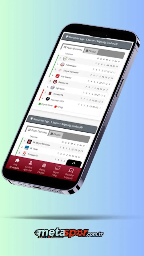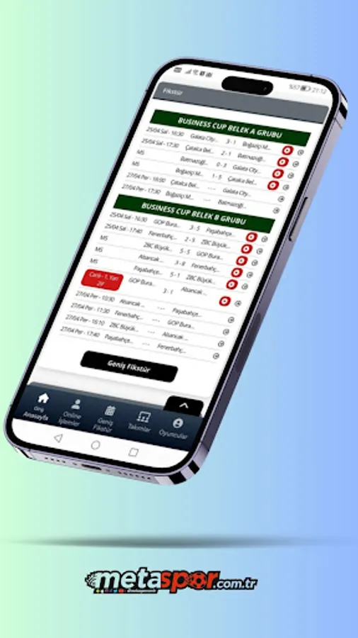 WITH THE "metasporcomtr" APPLICATION, THE WORLD OF AMATEUR FOOTBALL, BASKETBALL, VOLLEYBALL, FOOT TENNIS, LOCAL CARPET TOURNAMENTS ETC. LIVE SCORES, MATCH RESULTS, FIXTURES AND STATUS OF ALL "AMATEUR" SPORTS BRANCHES, TEAM AND ALL ATHLETES STATISTICS, TRANSFER MARKET "AT YOUR HAND AT ALL MOMENTS"