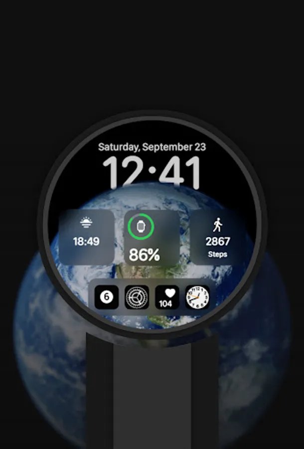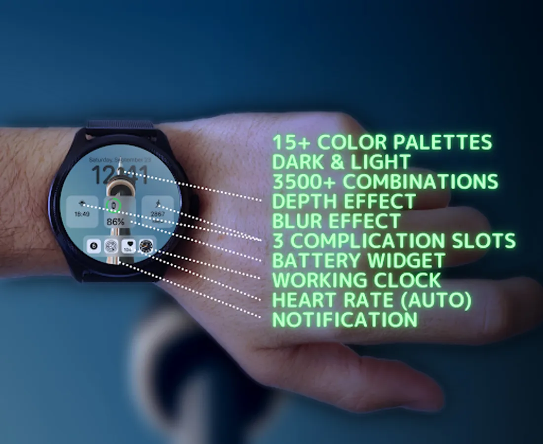 An iOS inspired watchface, full of information and highly customizable! Also features the depth effect (time behind wallpaper)! A small iPhone at your wrist.
