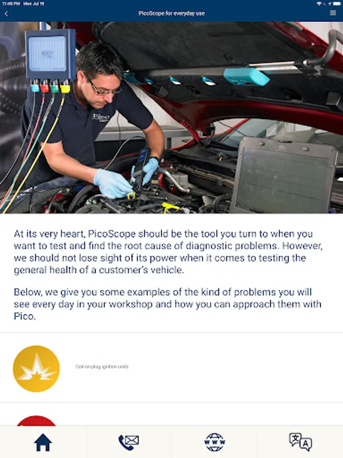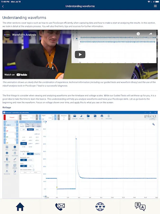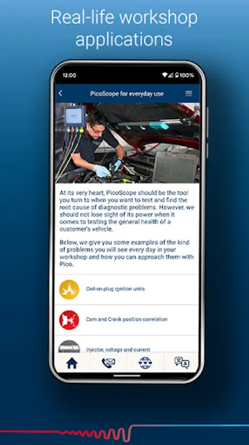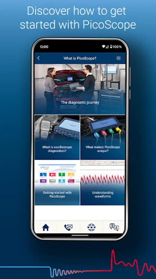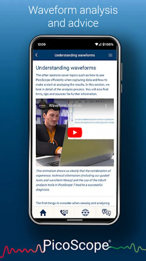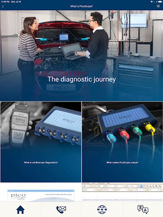 The app includes articles, animations and videos that show how PicoScope benefits you and your business and demonstrate the ease and simplicity of the PicoScope hardware and software.