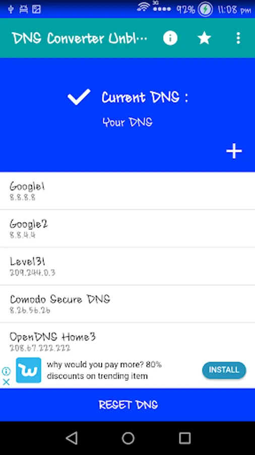 DNS Converter - Unblock Links is a simple DNS changer to unblocked all restricted sites. This app change your DNS server. DNS Converter - Unblock Links enhance your connection speed and did not reduce your speed like other DNS converters. This app work both for WIFI and mobile connection.