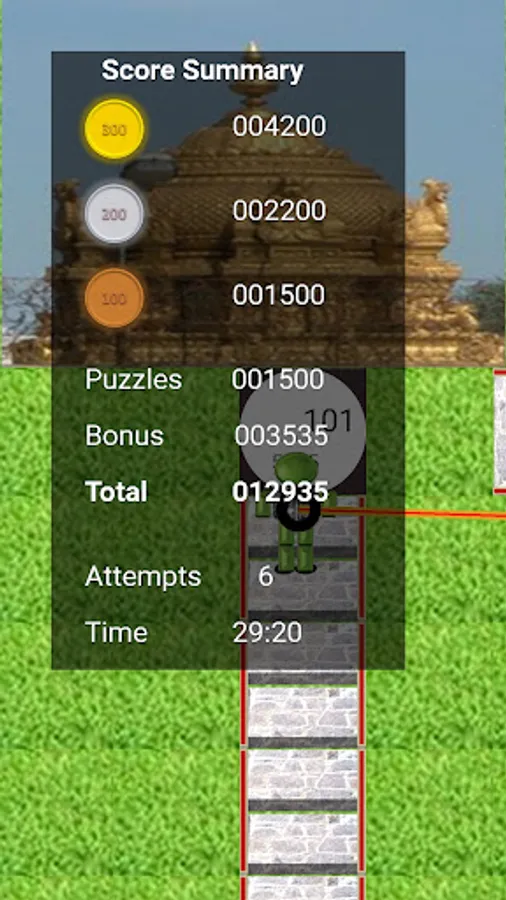 To reach destination one need to score minimum 10000 points, by collecting coins, playing puzzles and there is a bonus points added/removed after crossing every layer/level and for every attempt you need retake bonus points.