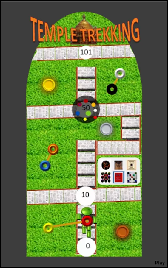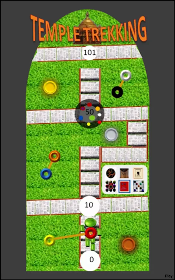 Temple Trekking is a mind trekking game which has multiple integrated games, playing this game can be slightly tricky. There are vertical layers/levels and horizontal laps. One can climb to the next layer/level either by using color rings and stretchable rope or by using stairs.