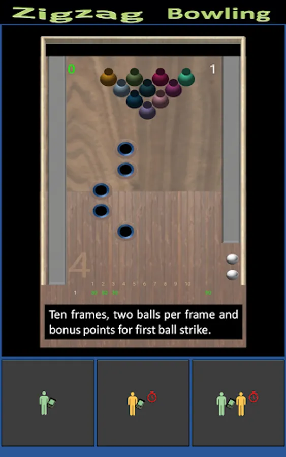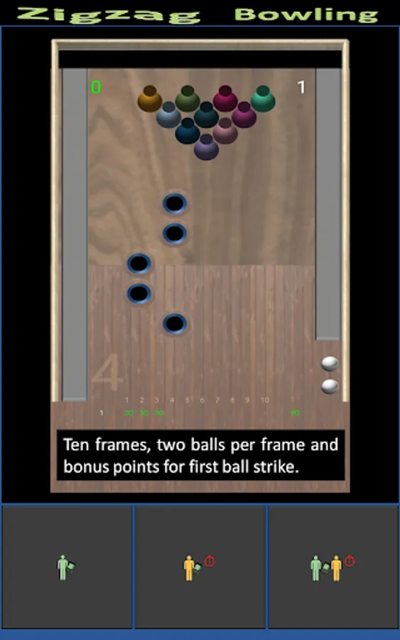 zBowling is a single/multiplayer game and conceptually similar to bowling, but here the player(s) need to balance the ball, avoid holes and gutters to hit the pins and score.
