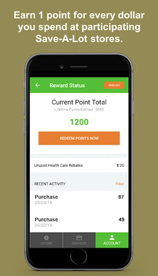 Shop at participating Colorado Save-A-Lot locations. Simply enter your 10-digit cell phone number during checkout and earn 1 point for every dollar you spend. Plus, get bonus points for healthy purchases and checking your EBT balance!