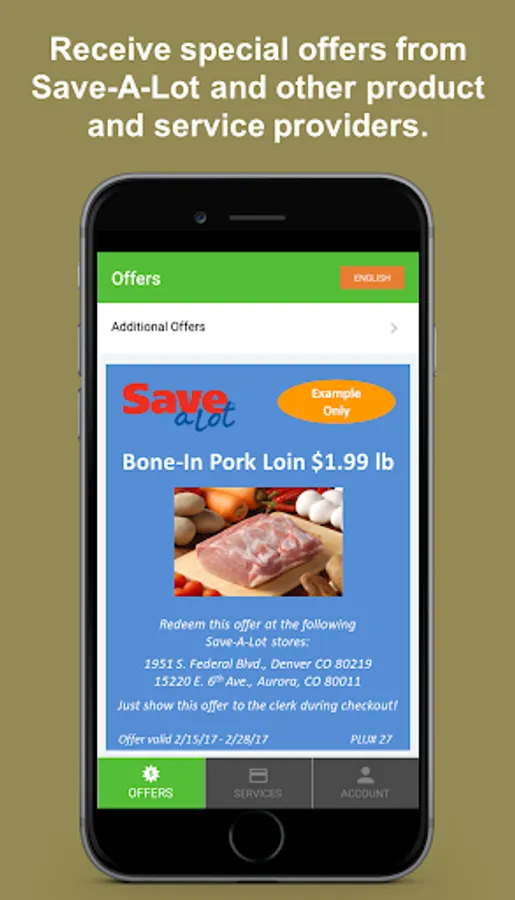 Take advantage of exclusive offers from Save-A-Lot by simply showing the offer on your smartphone to the clerk during checkout. And receive special offers from local health care partners, and other product and service providers.