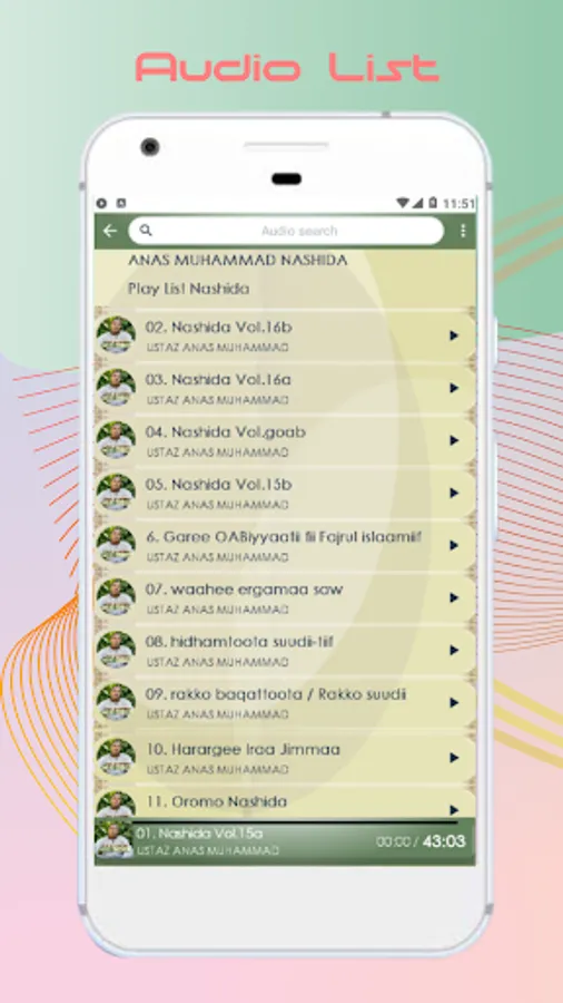 S2S Real Studio brings an exclusive collection of nasheeds by Anas Muhammad. The Nashida Affan Oromo Mp3 app is your faithful companion on your spiritual journey. Enjoy the convenience of listening to meaningful nasheeds without the need for an internet connection. With a user-friendly interface, you can easily explore various nasheed titles, taking you on a journey of deep thoughts and reflection. Whether you're in a moment of tranquility or seeking inspiration, these nasheeds fill your heart with peace. Get this app now and bring the beauty of lyrics and melodies into your daily life.