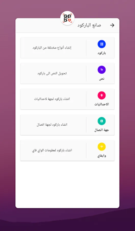 Other functions: Create barcodes, scan photos, scan from gallery, share your contact information via barcode