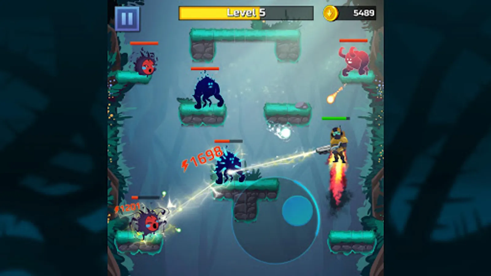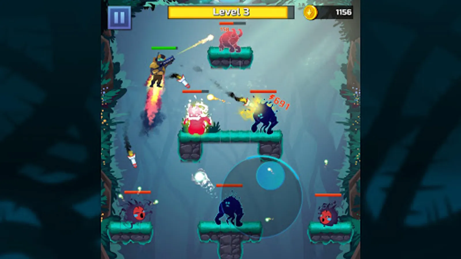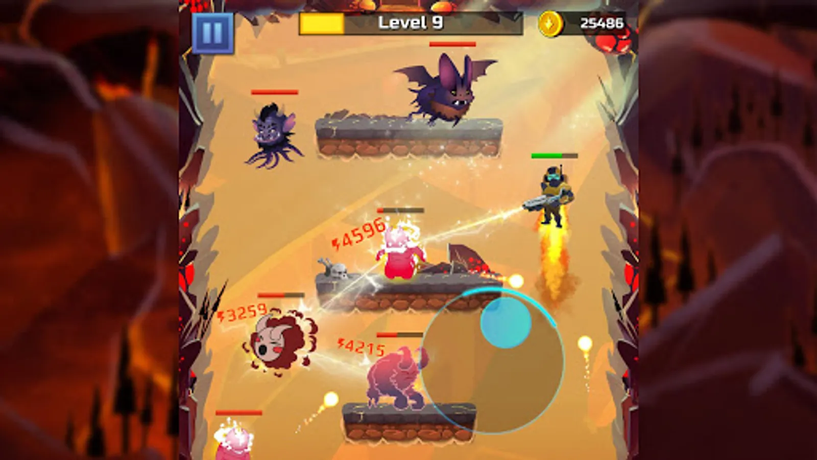 As befits any platform shooting games you should move through different locations, jump and shoot enemies you face along the way. How lucky you are having all the necessary! There are two types of enemies in this action platformer game – static and moving. Use your weapon arsenal to choose the most suitable one. You have a wide range of weapons, don’t forget to use gold to upgrade it! Also you can feel like jetpack jumper, fly away from the monsters and deal a devastating blow! Jump and shoot all the time to stay alive!