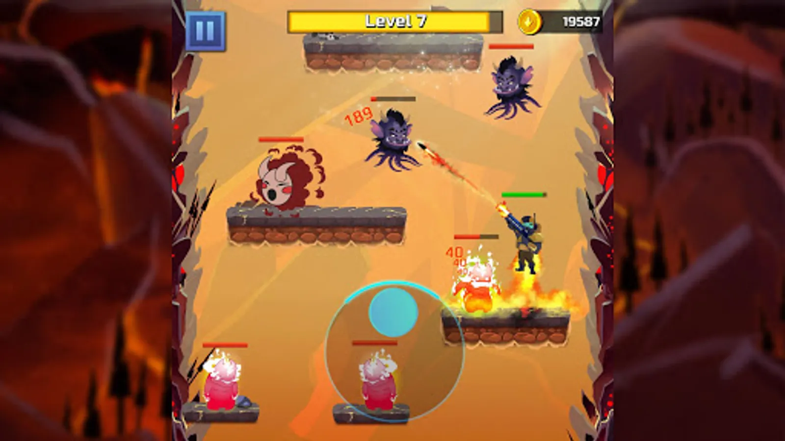 Playing Blighter – Jump and Shoot Action Platformer you become a modern hero in retro game. Fantasy action enemies are mythological monsters full of power and energy. If you want to complete a level and pass a location you should strengthen your hero and upgrade him. Control his running speed, shooting velocity, buy additional bullets and weapons.