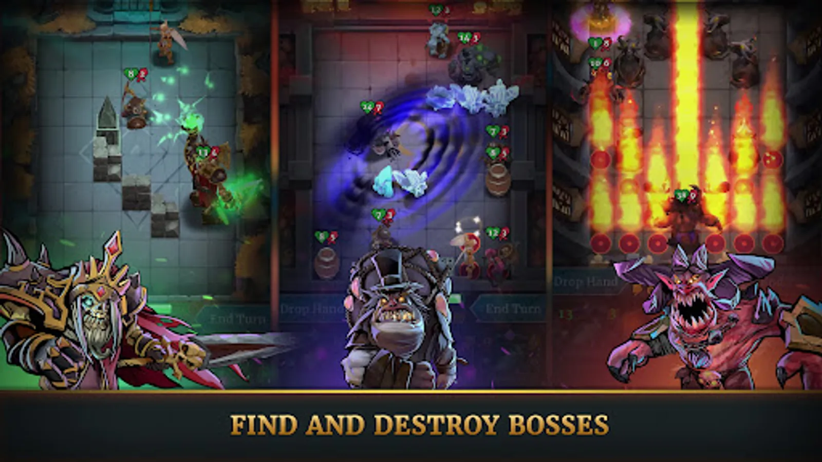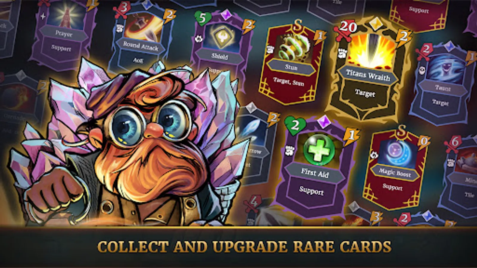 - If you prefer to hack and slash your enemies up-close and personal - you can use cards with piercing attacks or round cleaves, or find cards like “Earthquake” and the legendary and one of the mightiest cards “Titans’ Wrath”