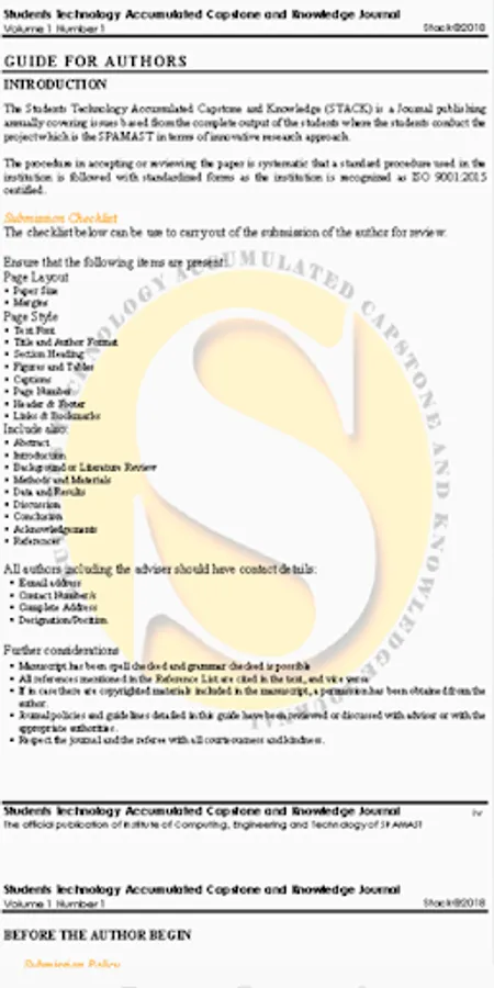 The Students Technology Accumulated Capstone and Knowledge (STACK) is a Journal publishing