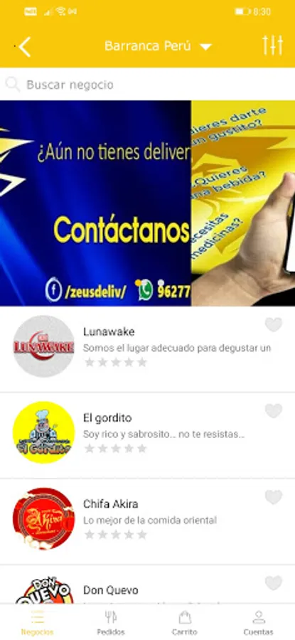 Orders, deliveries and more. Zeus Delivery from Barranca Peru. What you need to your home. Delivery application in Barranca: food, pharmacy, orders and more