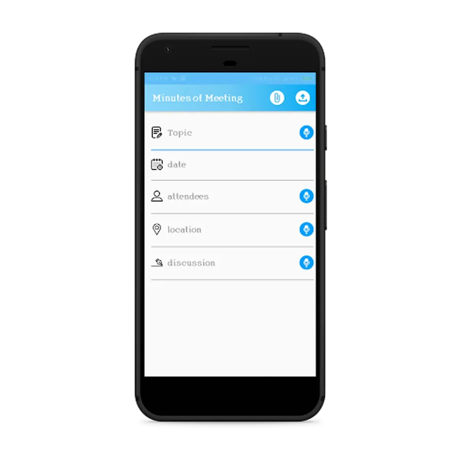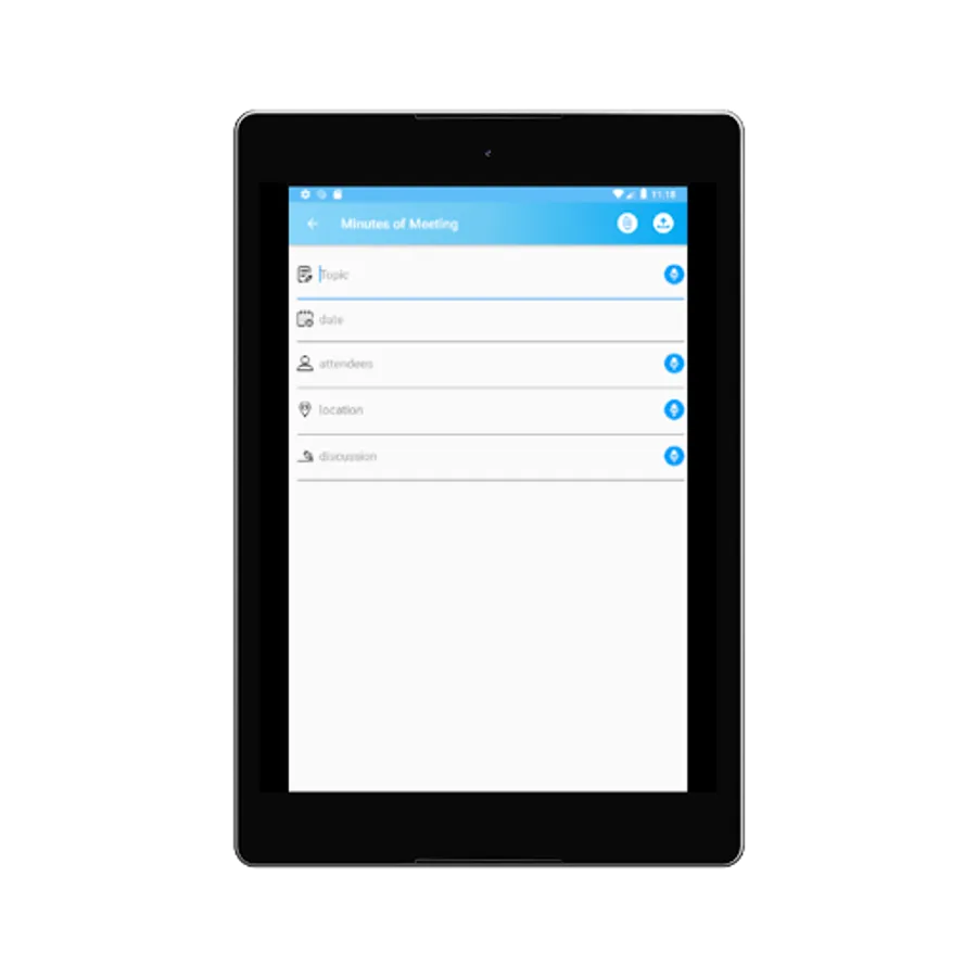 In this application you are able to store any type of meeting that is held in office ,school any place ,here microphone facility is available you can use it for save your time and also you can share your meeting detail via email.