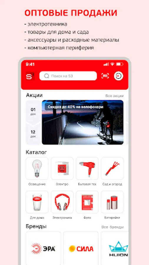 The assortment includes more than 10,000 items in the categories of lighting, household appliances, gardening, dishes, photo and consumables, electronics and audio equipment, batteries and chargers, as well as sockets and switches, voltage stabilizers, soldering equipment and LED equipment. In the catalog you will find products of domestic brands: Era Light Energy, Trophy, Strength, Era Pro, Moment; as well as well-known world brands: Rivoli, Ariete, Valera, Kodak. Supplier S3 distributes and wholesales throughout the Russian Federation, offers discounts and profitable promotions for regular customers.