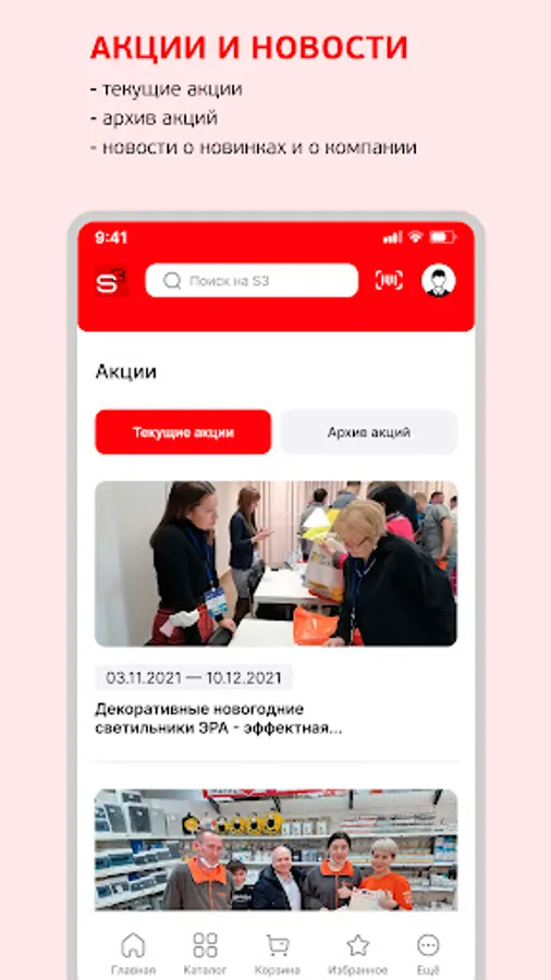 The S3 mobile application is a service for legal entities and individual entrepreneurs that allows you to place orders and receive information on them in a convenient format, wherever you are! Choose products and order them literally on the go or put the ones you like in the "Favorites".