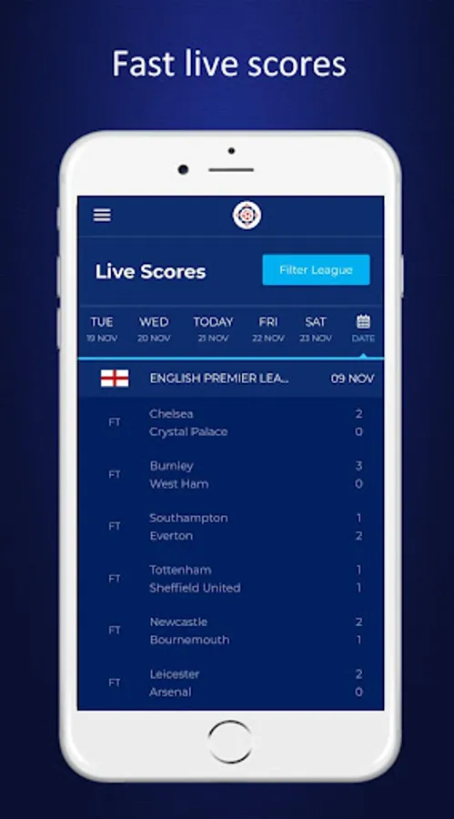 Blazing fast live score updates and notifications for all football leagues and competitions globally.