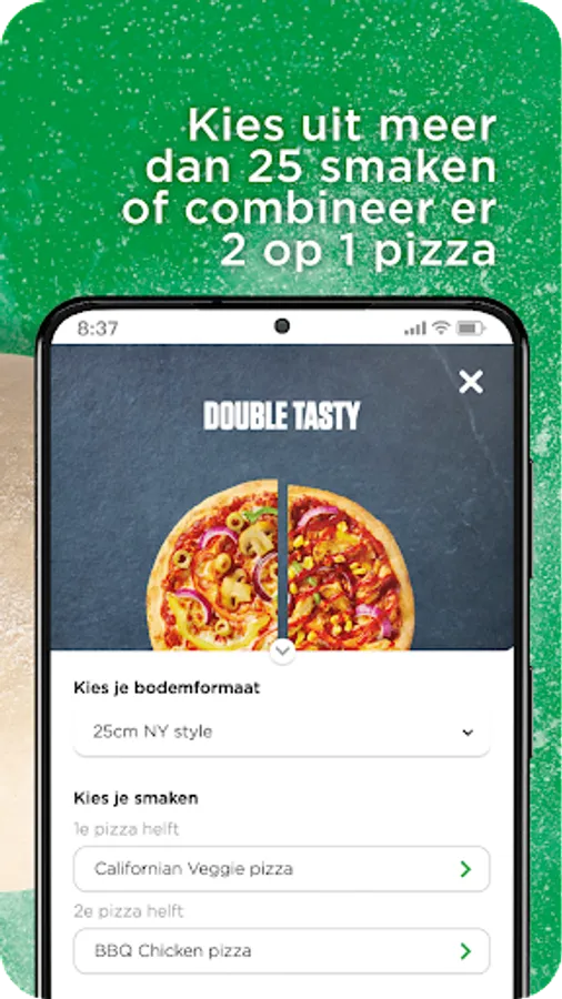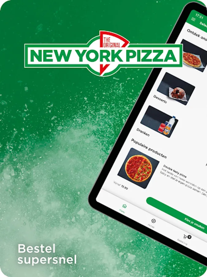 Via the New York Pizza app you can quickly and easily order your favorite pizza, fresh pasta, side dishes or desserts. After selecting a dish, all you have to do is enter an address. And if you choose to create an account, you become a direct member of our PizzaPoints savings program and you automatically save for free products and exclusive deals. You decide how quickly your balance increases: the more you order, the more PizzaPoints you save. You can then claim this yourself in the PizzaPoints shop. Your address is also saved with your account, so that you can place an order even faster next time. For example, order a fresh Shawarma pizza, delicious pasta or compose your own pizza. Too many tasty flavors? Then choose the Four Tasty with 4 flavors on 1 pizza. Have you saved enough Pizza Points? Then order a free product in the PizzaPunten shop. Or participate in cool promotions in the app.