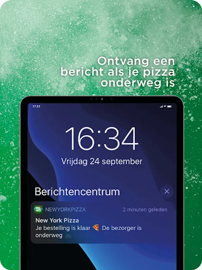 New York Pizza has a wide range of pizzas, pastas and other dishes. We are happy to deliver your order to your home as soon as possible. Do you want to stay up-to-date on the status of your order? Set up your push notifications and receive a push notification when the delivery driver is on his way!