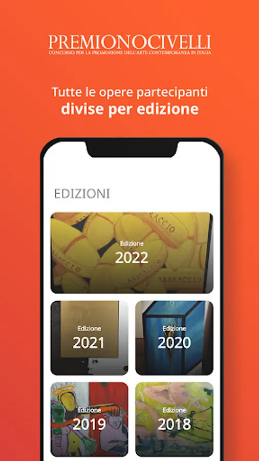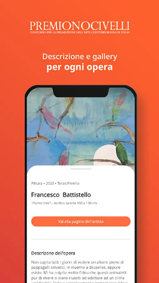This application allows you to see all the artists participating in the Award, to view their works and put 'Like', to read their biographies. All information and photos will remain visible over time and artists will have the opportunity to add other works even out of competition.