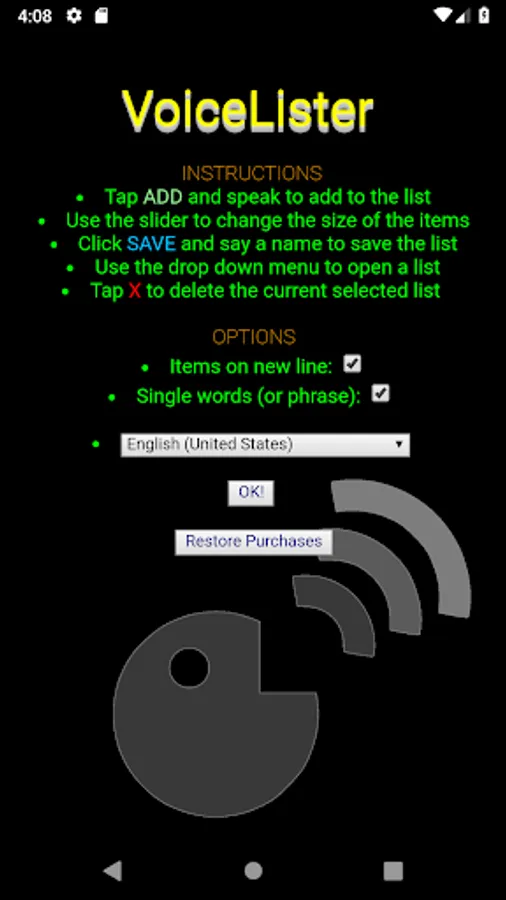 Use your voice to create lists, tap to remove items. Works with alexa and other voice assistants, simply ask your voice assistant to read the list while recording in the app and it will populate in the app. Perfect for shopping and todo lists.