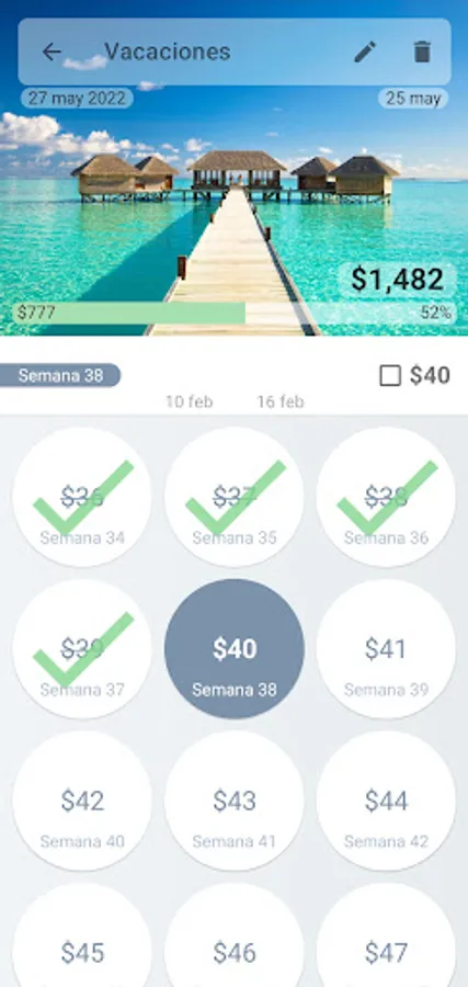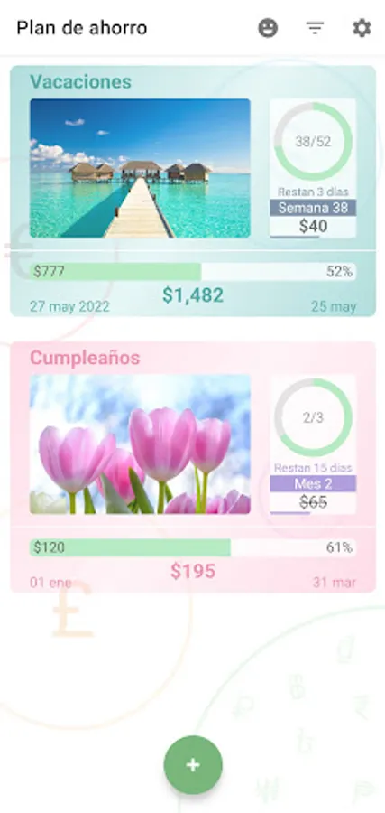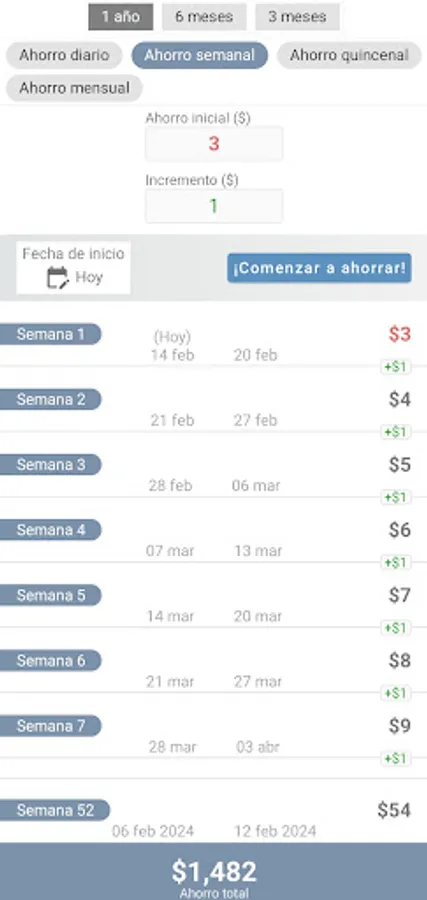 To begin with, we offer you a powerful tool for creating your savings challenges. It is very intuitive and you can make various adjustments: