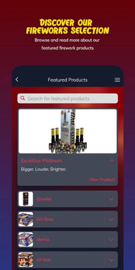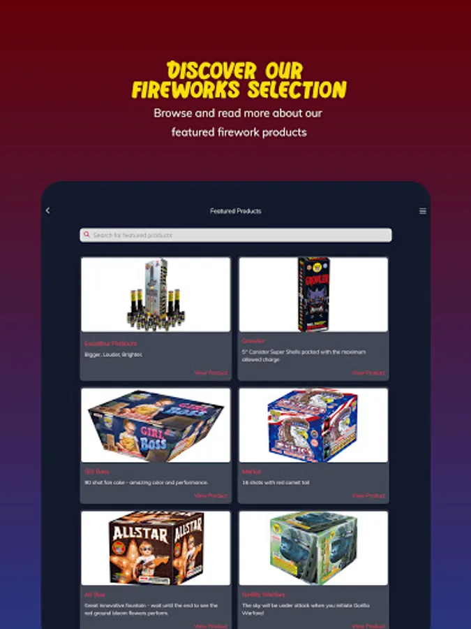 Check out firework videos as well as featured products. Look up your VIP Rewards points for free fireworks. Coupons exclusive to this app. Sign up to earn rewards on in store purchases.