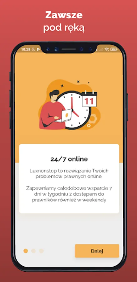 The Lexnonstop application connects clients with experts in over 30 areas of law: advocates, legal advisors and tax advisors. Thanks to it, you can take advantage of legal advice anywhere and at any time. All you have to do is indicate what type of advice you need - online or by phone, a simple answer or maybe a valuation of the action. Grab the phone and use legal assistance - it couldn't be easier!