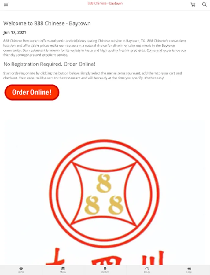 Online ordering for 888 Chinese Restaurant in Baytown, TX