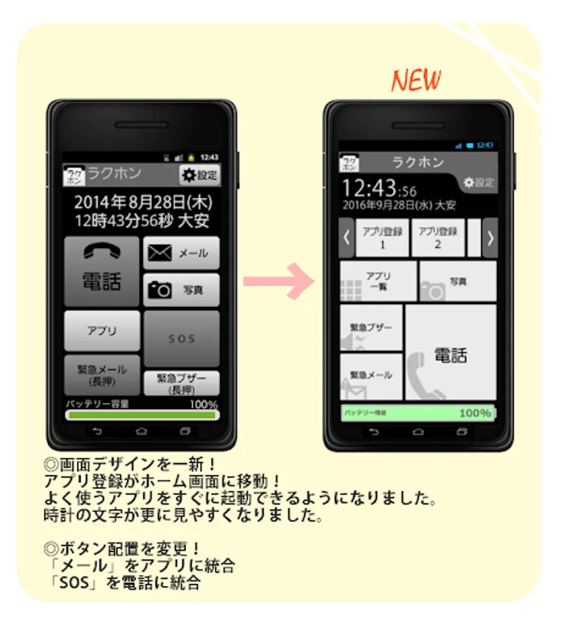 Rakuphone = rakuraku phone was born to support young children and seniors of life.