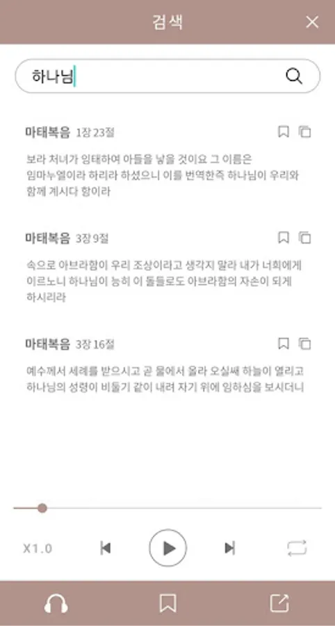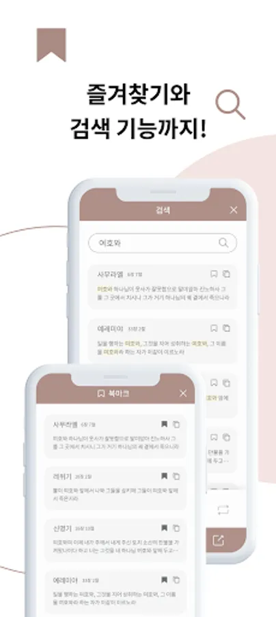 Search function and favorites - You can search and find verses of the Word, and you can use them easily and conveniently as your own favorites.