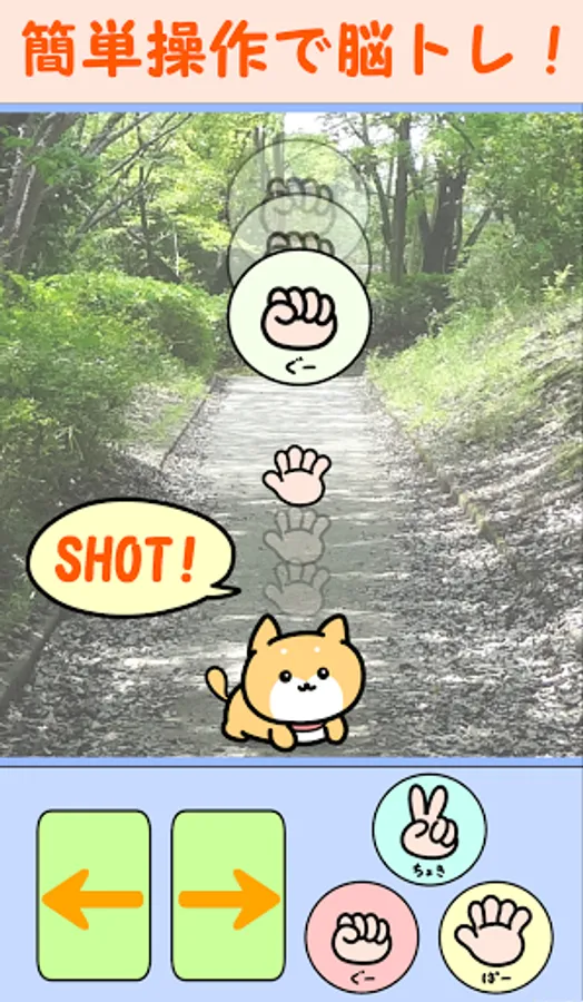 Move the Shiba Inu dog and shoot at the rock-paper-scissors object falling from above!