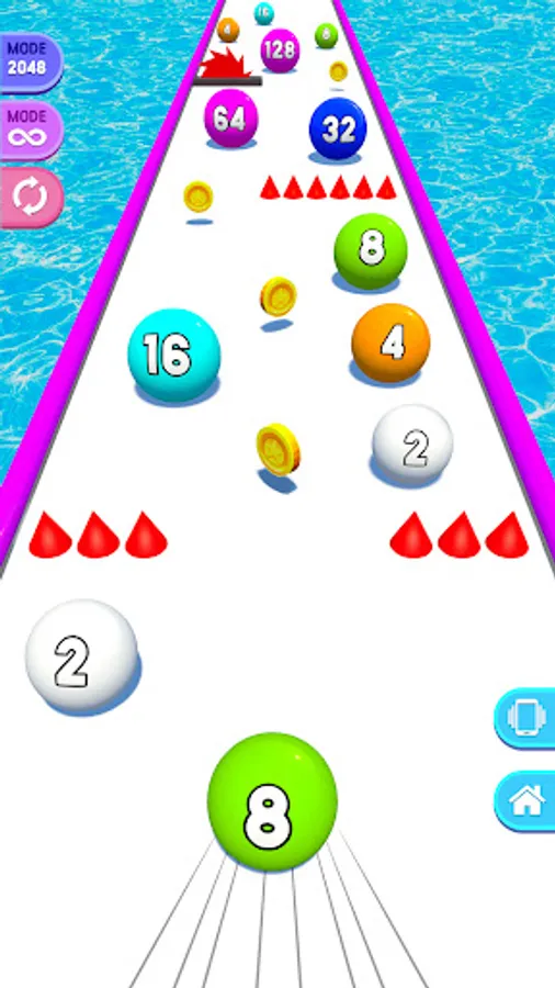 If you touch any obstacle, the 2048 Merge Number will divide your ball into smaller numbers, so keep your distance from them.