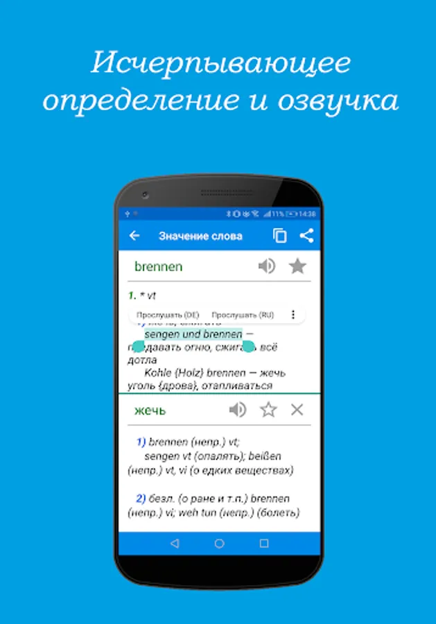 Tired of carrying large and heavy dictionaries with you? Now everything you need will be in your smartphone! German-Russian and Russian-German offline dictionaries will always be with you, wherever you are - studying, traveling or studying German at home. The dictionary contains about 215 thousand commonly used and specialized words!