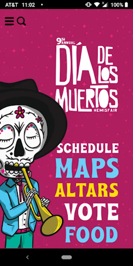 The app features detailed schedules, maps, art market vendors, and information on all the altars.