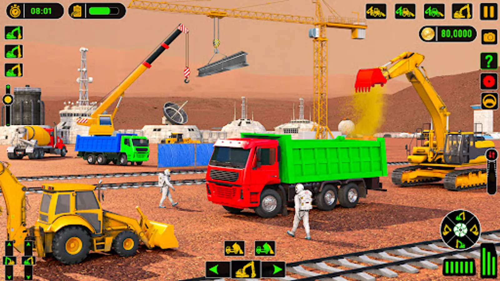 The year is 2094, and you are about to establish a new colony on Mars, the outer space planet nearest to Earth. Your mission is to construct a space city for colonization. The information we have is still limited, and it is difficult to survive in this cold, lifeless, red desolation. In this space city builder game and bridge construction game, you're tasked with establishing an interplanetary space construction headquarters on Martian soil and initiating an outer space colony Mars colonization protocol for a space habitat. Start your space city survival mission and commence city construction with the spider excavator, Mars rover, and Mars rover respectively. Drive Mars Survival Rover, Spider Excavator Crane Simulator 2018, Grapple Crane, Bulldozer Machine, Lunar Rover, and other Heavy duty machinery for the ultimate city construction of a space city on the planet Mars.