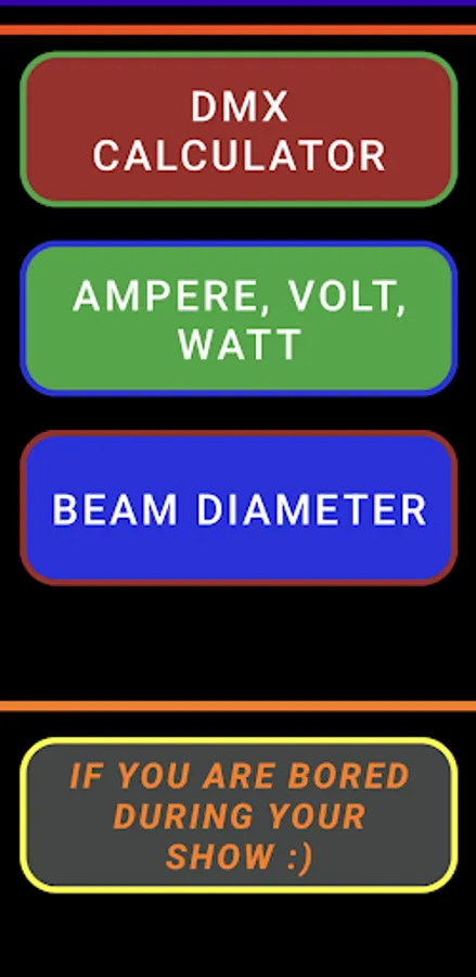 There are several other handy features. You can calculate current, voltage or power. Calculate the spotlight beam diameter depending on the distance to the stage and the angle of the lens. There is also a little logic puzzle
