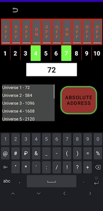 The app will help determine the position of the DIPswitches, and calculate the dmx address of the devices.