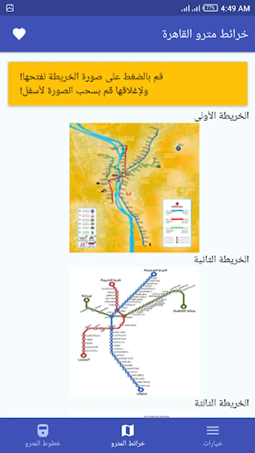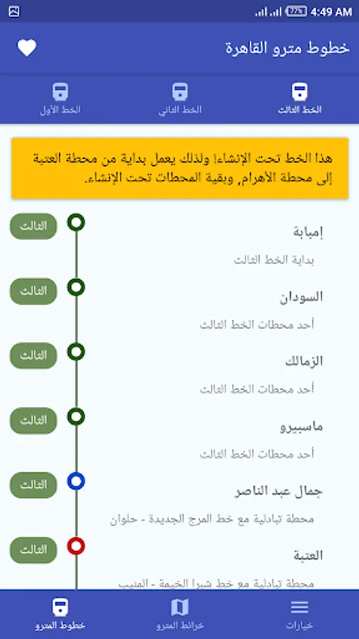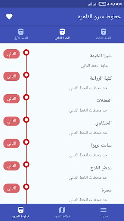 A simple application that contains maps, lines and stations of the Cairo metro, always and at any time on your smartphone.